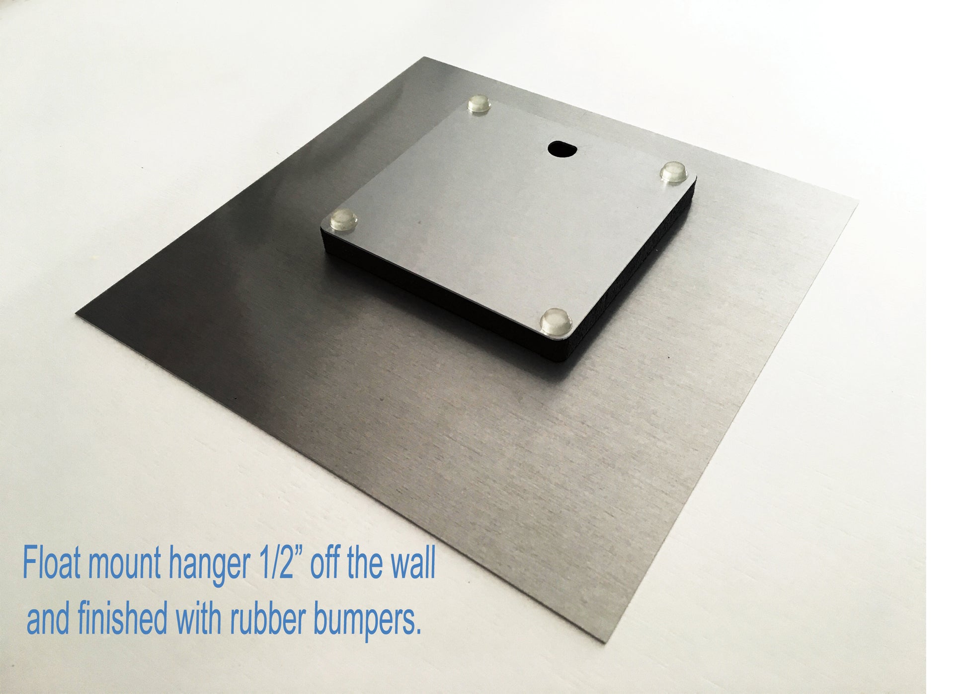 Each piece arrives ready to hang, equipped with a float-mount hanger that displays the artwork ½" off the wall for a sleek, modern, gallery-style presentation. Rubber bumpers are included to protect your wall and ensure stability.