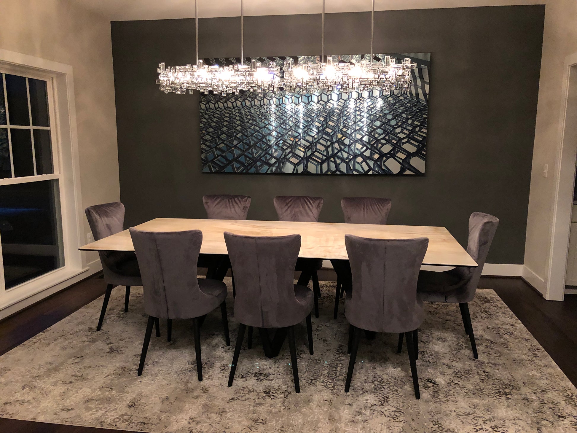 Working with White Cloud Gallery completely transformed our dining room. What began as a neutral space became something intentional, dramatic, and truly special. The artwork they suggested instantly set the tone, bringing depth, texture, and a sense of movement that the room was missing.