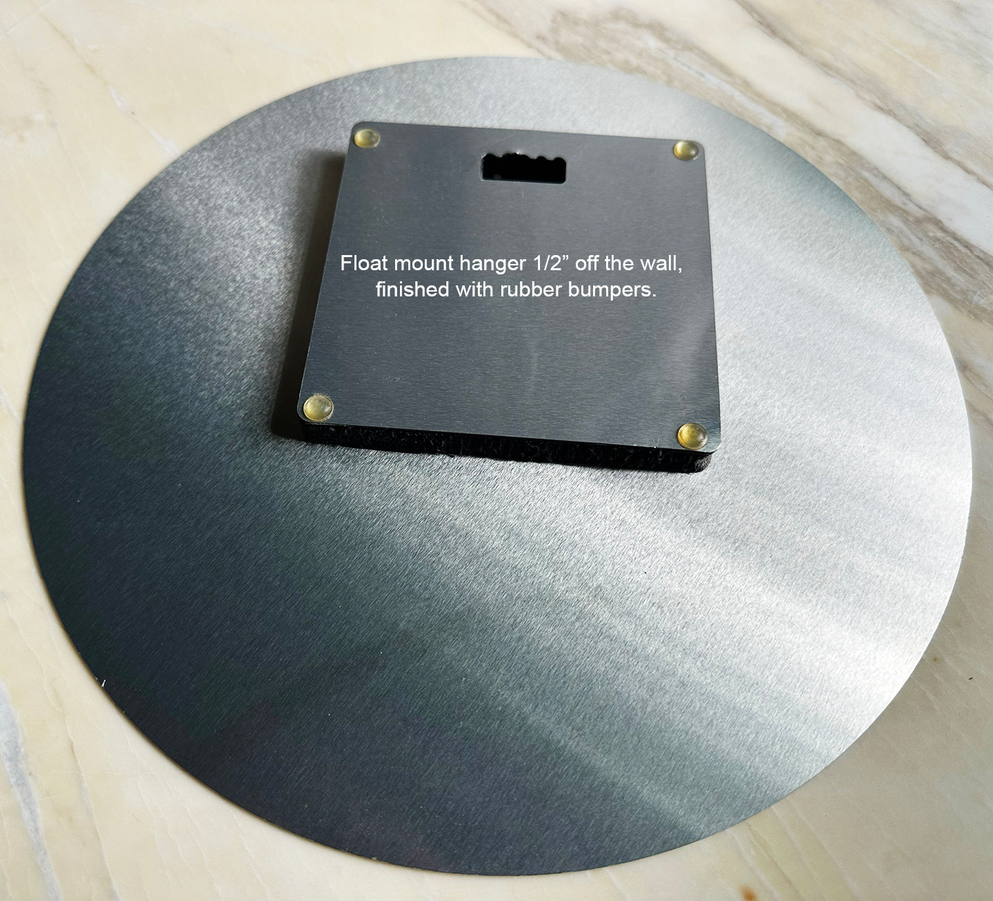 Each piece arrives ready to hang, equipped with a float-mount hanger that displays the artwork ½" off the wall for a sleek, modern, gallery-style presentation. Rubber bumpers are included to protect your wall and ensure stability.
